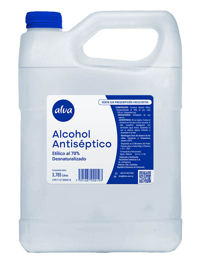 El alcohol etílico o etanol se emplea tópicamente sobre la piel como antiséptico a una concentración del 70% p/v. Se emplea en desinfección de la piel antes de las inyecciones cutáneas, en extracciones sanguíneas y en la desinfección de jeringas y termómetros clínicos (siempre que se deje el tiempo suficiente de contacto).